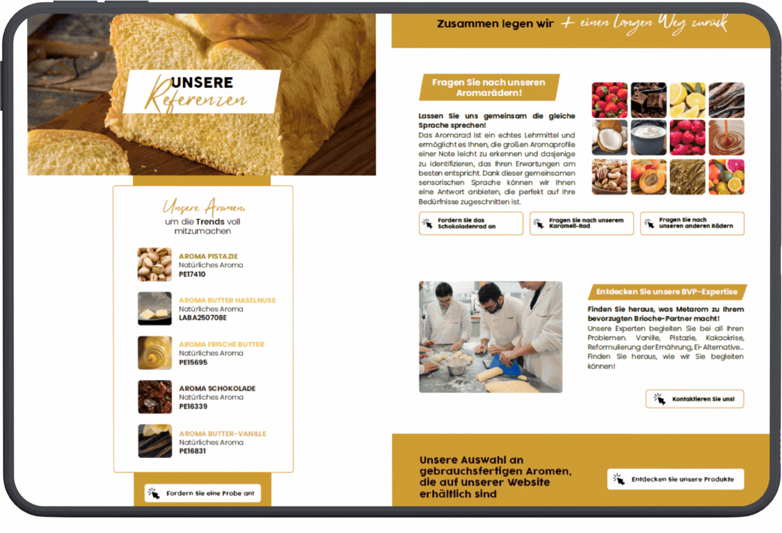 Wir entdecken die Markttrends und passen unser Angebot an, um gemeinsam Ihr Projekt zusammenzustellen. Nachdem Sie uns Ihre Erwartungen mitgeteilt haben, validieren wir gemeinsam unsere Vorschläge. Wir schauen, ob man Produkte ernährungsphysiologisch verbessern kann. Wir bieten individuelle Unterstützung, um zusammen mit Ihnen den idealen Geschmack zu kreieren, den die Verbraucher schmecken möchten.